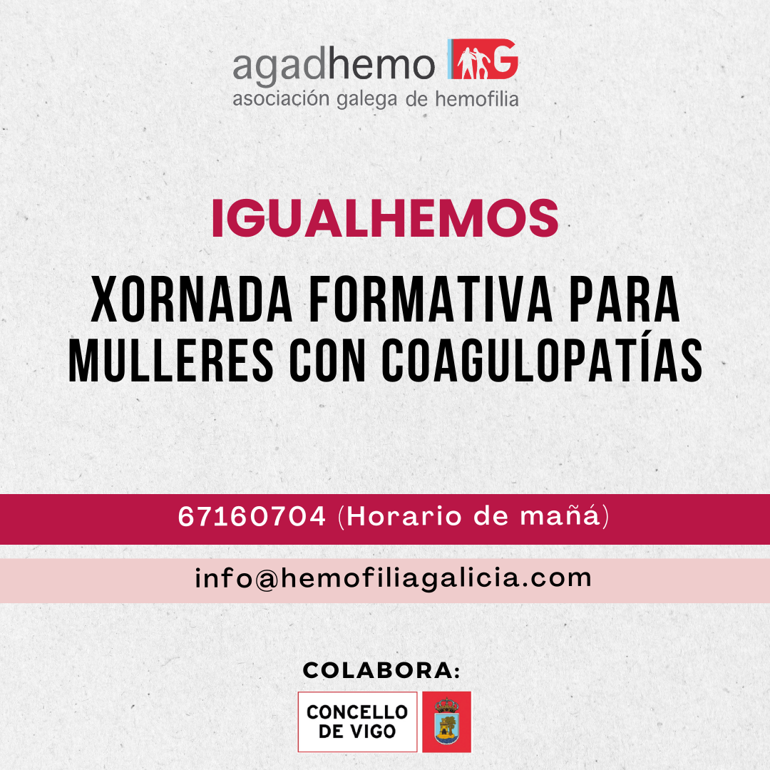 ✨ O proxecto IGUALHEMOS de apoio psicolóxico para mulleres con coagulopatías conxénitas da área sanitaria de Vigo. 💬 Co apoio e colaboración do Concello de Vigo, fomentamos o benestar emocional e o sentimento de pertenza. Xuntas fortalecémonos! #SaludMental #Coagulopatías #Vigo Para consultar o programa definitivo e máis información podes contactar connosco: 📞 671 660 704 […]