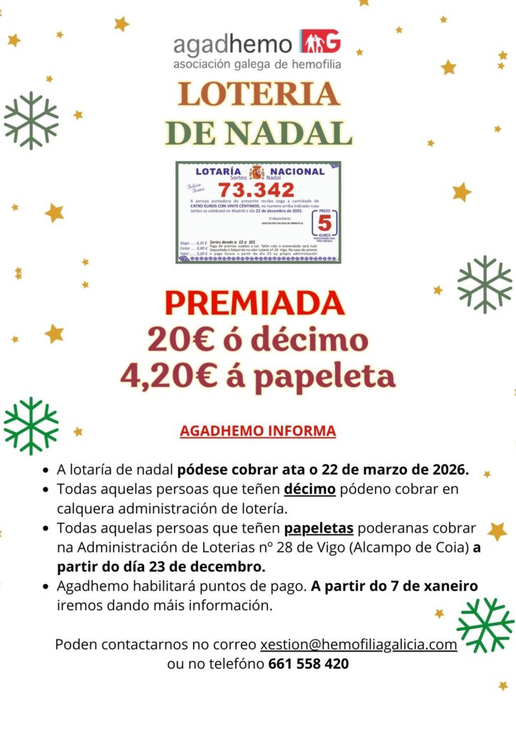 Para máis información escribe ó 📩 xestion@hemofiliagalicia.com ou no 📞+34 661 558 420(Horario de maña)